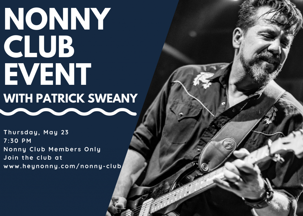 We’re having our next private event on Thursday, May 23 with Patrick Sweany! He ‘s a great blues-rock singer and player from Massillon, Ohio, and his band is so much fun. If you’re a Nonny Club member, let us know that you’re coming by emailing Contact@HeyNonny.com with how many of your members will attend. If you’re not a Nonny Club Member, join now!