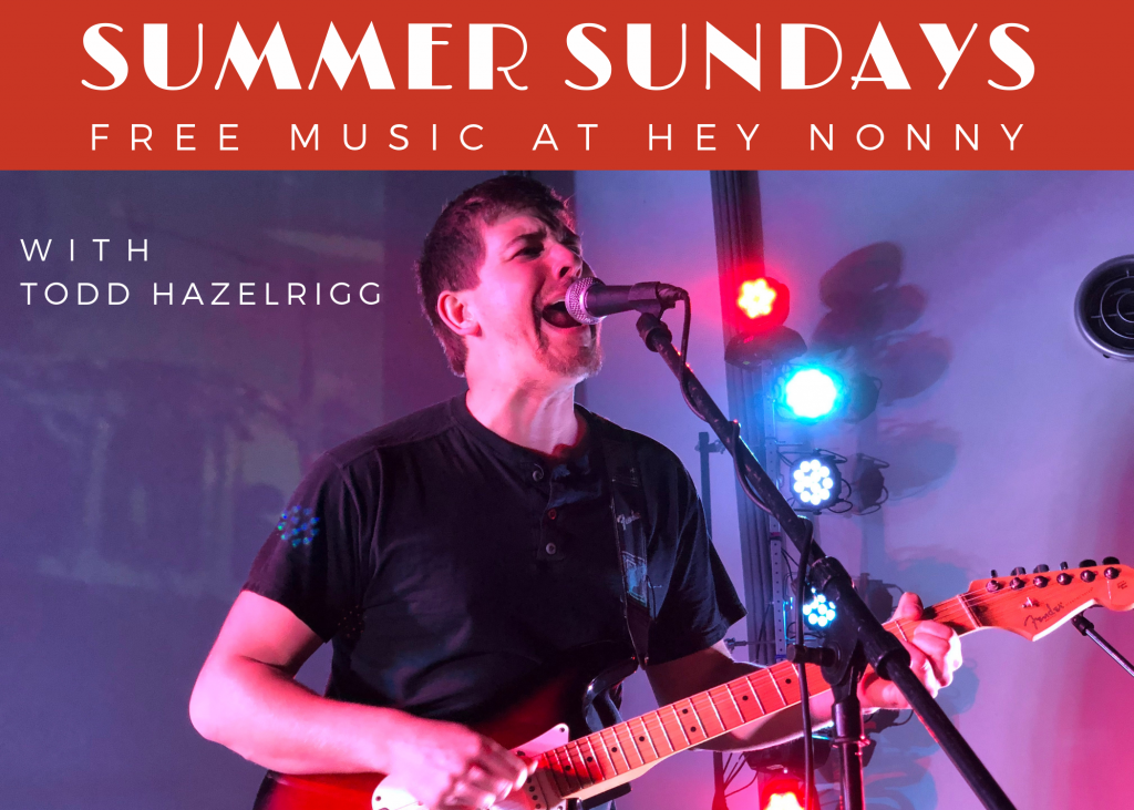 Todd Hazelrigg is a singer/songwriter who blends folk with funk and everything in between. Be here on July 21 at 2:30 to check him out! While you’re here, enjoy our Summer Sunday $10 Burger and Draft Beer special!